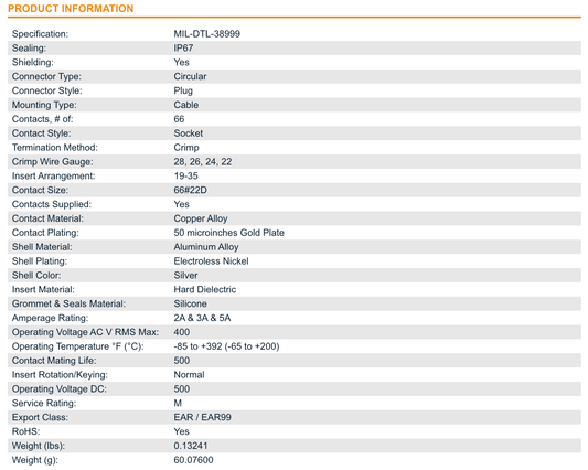 NEW Amphenol TVS06RF-19-35S - 66 Position Mil Spec Circular Connector - USA